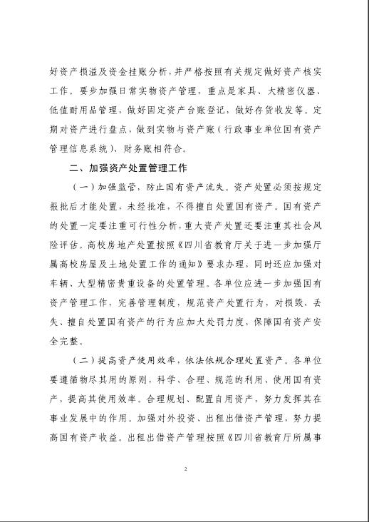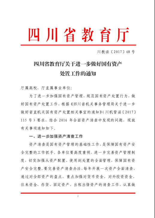 四川省教育厅关于进一步做好国有资产处置工作的通知