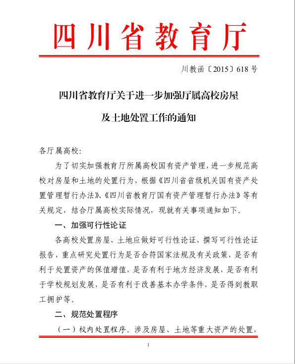 四川省教育厅关于进一步加强厅属高校房屋及土地处置工作的通知